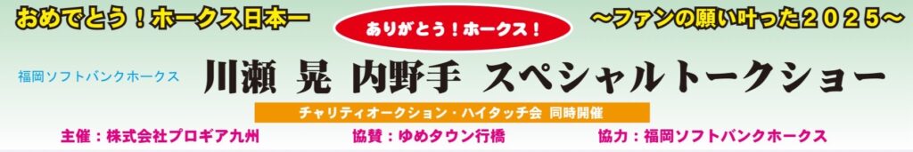 12月29日行橋ゆめタウンにてソフトバンクホークスの、川瀬晃選手のトークショウを開催いたします。